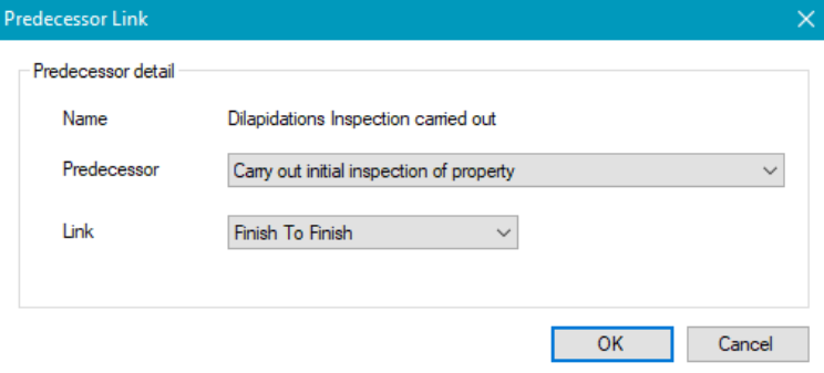 Repeat this process for as many predecessors as necessary, and then click OK.