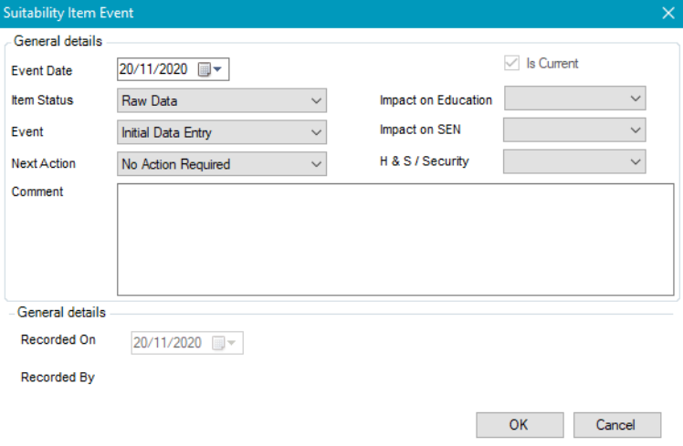 General suitability information is stored at the business unit (school) level with individual suitability items stored at the room or zone level.